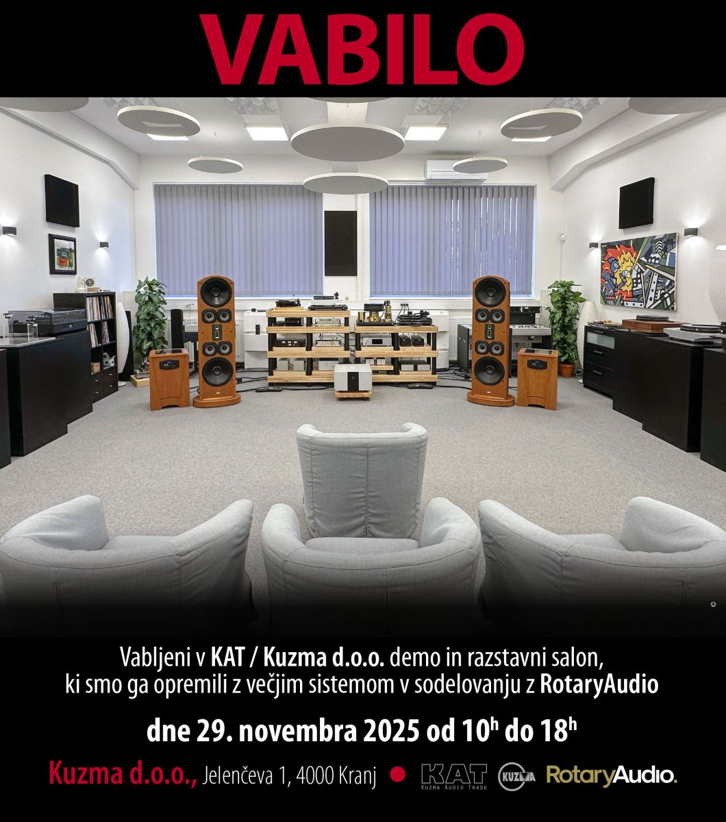 DEMO SALON KUZMA: Salon je namenjen predstavitvi Kuzma izdelkov (gramofoni, ročice in gramofonske glave), kjer jih je možno tudi slišati v vrhunskem sistemu.